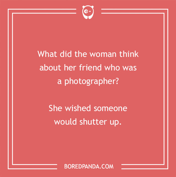 What did the woman think about her friend who was a photographer? She wished someone would shutter up.