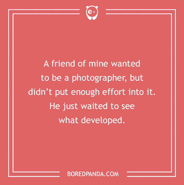 A friend of mine wanted to be a photographer, but didn’t put enough effort into it. He just waited to see what developed.