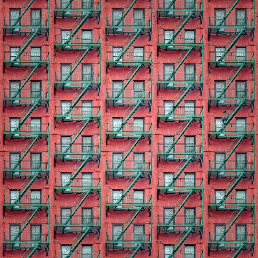"My ongoing series of New York fire escapes is an uplifting tribute to the rhythm of this fascinating city. To me the fire escapes and the facades behind them are very characteristic for New York. On one side they are abstract compositions, but at the same time the stairs and windows behind provide a tangible reference to the human scale."