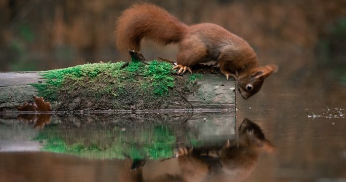 I Captured Squirrels Looking In The Water As If They Were Looking In The Mirror (14 Pics)