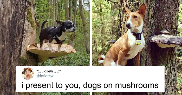 So next time you go on a walk with your dog in the forest and spot a giant mushroom shelf on a tree—don't forget to snap a photo of your dogs having their best time on top of mushrooms, because this viral trend is guaranteed to brighten everyone's day.