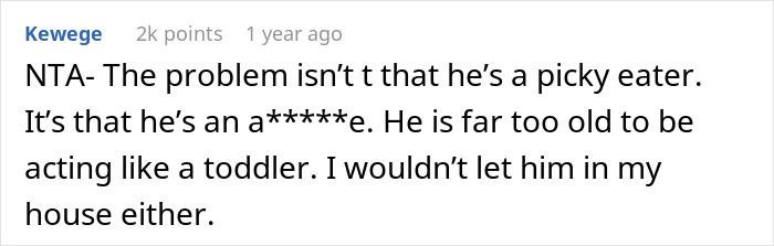 “AITA for banning my picky eater BIL from my house and telling him he’s not welcome until I say he is?” – this internet user took to one of Reddit’s most honorable communities to ask its members if it was a jerk move to ban his brother-in-law from his house for constantly throwing tantrums over food. The post managed to garner nearly 7K upvotes as well as 799 comments discussing the situation.