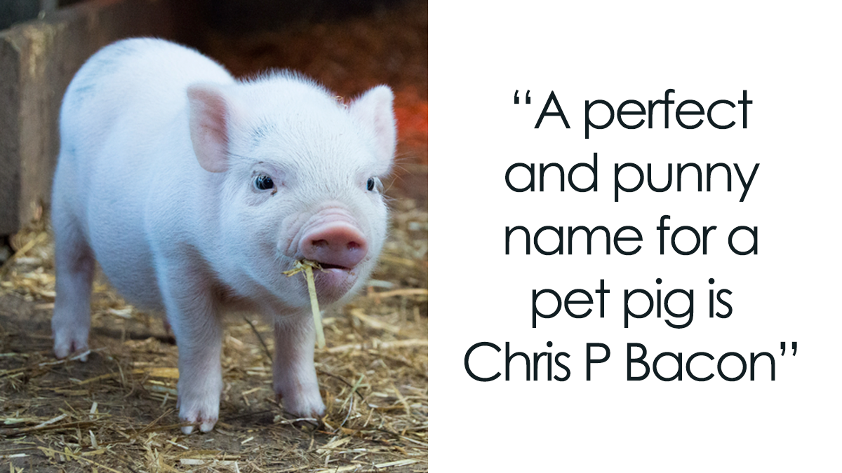 A perfect and punny name for a pet pig is Chris P Bacon.