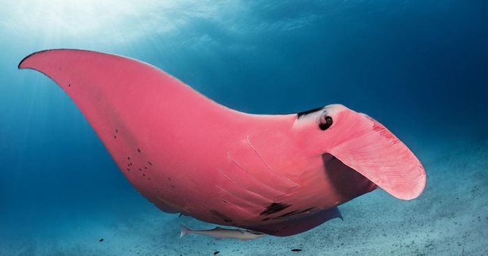 To everyone’s surprise, instead of the usual black and white, this manta ray was black and pink