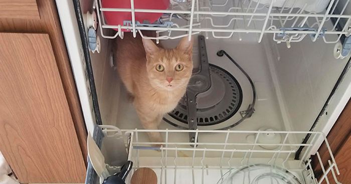 His owner, Sondra, eventually started photographing Oliver's shenanigans. From the bread machine to the dishwasher, it looks like there isn't a corner where Oliver hasn't put his paws, and these amusing pictures purrfectly portray his curious nature.