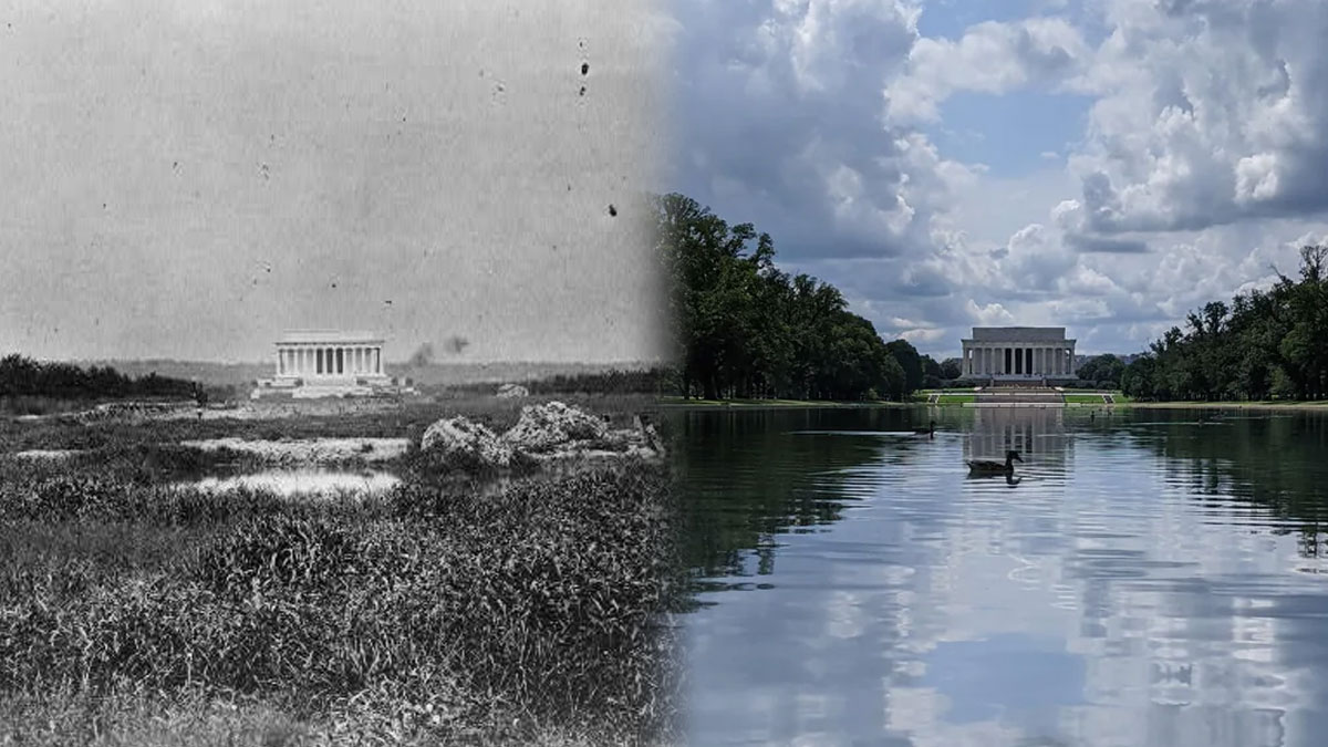 Lincoln Memorial in Washington, D.C., U.S. 1917 vs 2020