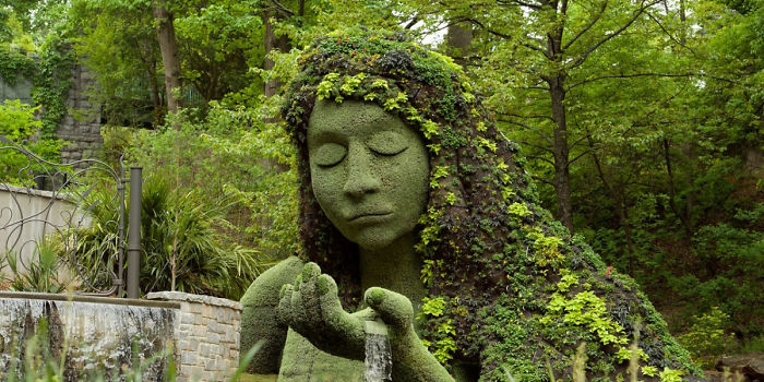These amazing art installations seem to rise out of the earth and plants around them. And because the plants they are made from are living, they always stay green and fresh. Obviously, because of the textures and shapes that can be created with moss and low-growth plants, many of these structures lend themselves to organic forms, mimicking people or animals. The largest of them all, Earth Goddess, is 25 feet tall and is a permanent piece in the garden.