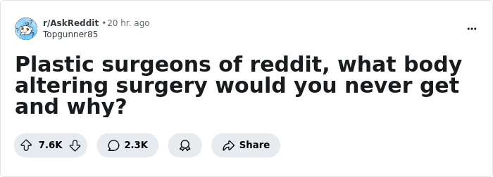 Yet, despite plastic surgery being rather common among people, the surgeons themselves have opinions about each procedure. And apparently, there are some that they don’t view in such a positive light and would never choose for themselves under any circumstances.