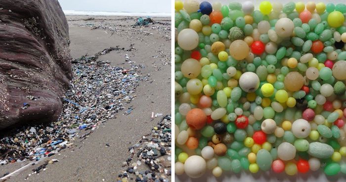 Guy Collects 35 Bags Of Microplastics On The Beach In Just One Day, Turns It Into Art