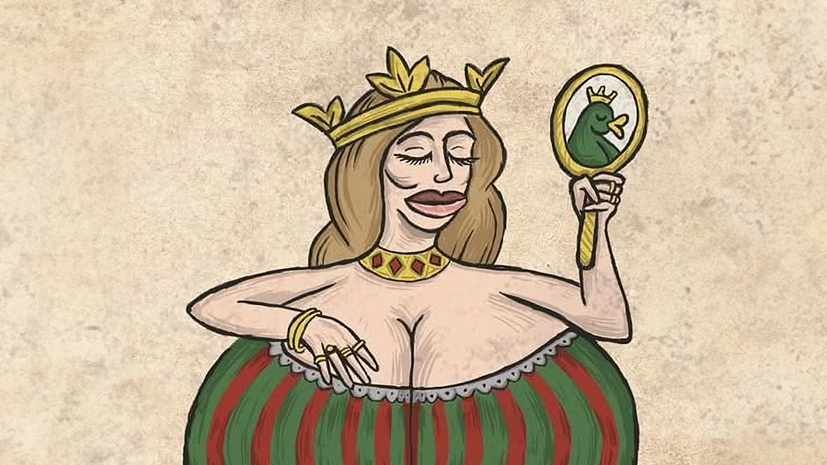 “I preserved the traditional suits, but each one tells its own unique story, its own clan’s tale,” he continued. “The jacks aren’t gallant young men; instead, you’ll find bloodthirsty hares, plague doctors, devils from hell, and even mythical unicorns. The queens aren’t your typical royalty—one might show the effects of plastic surgery, while another reveals a fondness for alcoholic drinks. As for the kings? They could be sitting on golden toilet brushes or ruling over burger joints.”