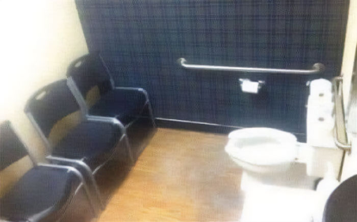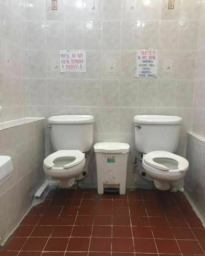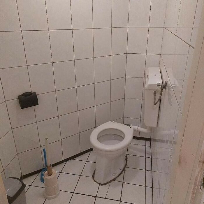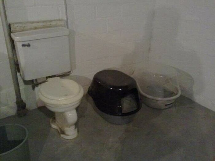Where's the design fail? This is clearly a basement bathroom with a couple of kitty litter boxes