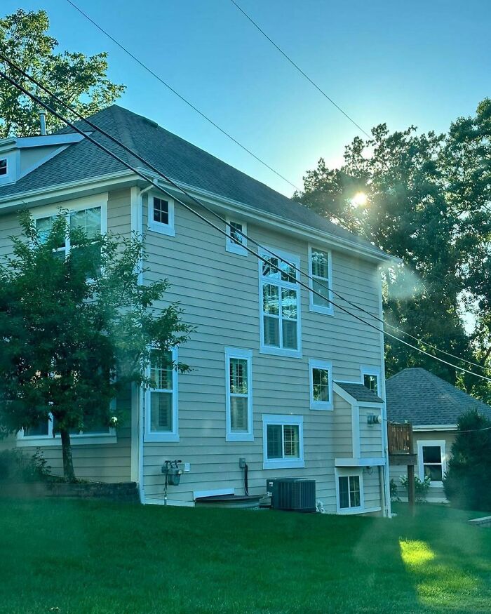 "Sorry, we can't center the entrance to the door because of the gutter downspout."