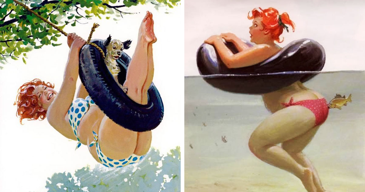 Created by illustrator Duane Bryers (1911-2012), Hilda was a plus-size girl who was definitely not shy about her chubbiness. Not only was she the only curvy girl in the pin-up game at the time, but she was also hilariously clumsy. Hilda pin-ups graced America’s calendars from around the 1950s to the 1980s, and to celebrate that, we are going to share some of Duane Bryers’ classy illustrations below. Don’t forget to vote for your favorite Hilda pin-up!
