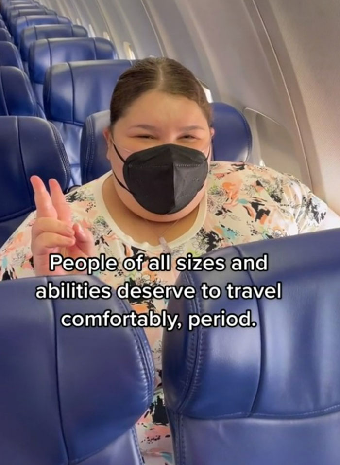 If you're like Lizzo, twerking and moving your a*s around, be my guest. If you need oxigen to get out of the house you really need to do something. Dunno if this lady is, but most of the complaints were "seats are too small", when l think that's the least of her problems right now.