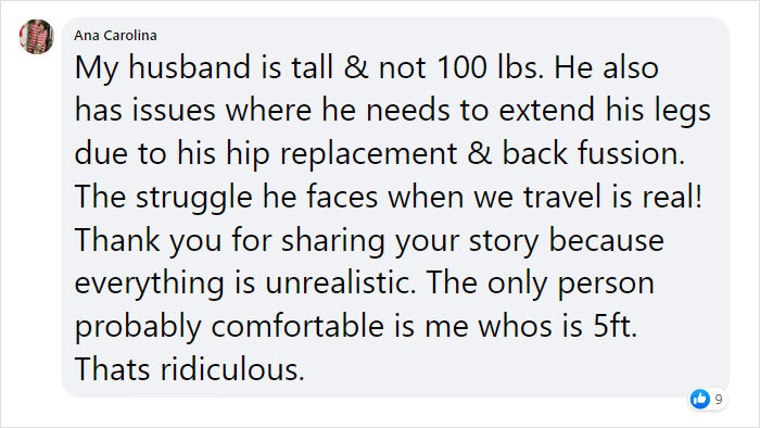Load More Replies...So many hate comments. Judging by the reactions, some even feel personally attacked. I wonder what is wrong with these people? Insecurities? Uneducated? The need to feel better than others or to judge? The woman is simply showing her difficulties in travelling. Difficulties that could be solved relatively easily. (No one is asking for everything to be to be adapted to overweight people).