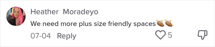 Load More Replies...Okay, as a fat person who falls in the morbidly obese category, let me say that many of the things listed as 'fat people hate' are self-inflicted problems, unless the person has a medical condition. (Narrow aisles, chairs with arms, plane seats and bathrooms, chub rub). Embarrassed to ask for a seatbelt extender? Carry your own, they're easily purchased online. Restaurants often can accommodate if you ask. Places without accessibility? Frustrating but that's life.