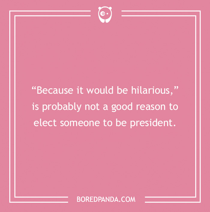 “Because it would be hilarious,” is probably not a good reason to elect someone to be president.