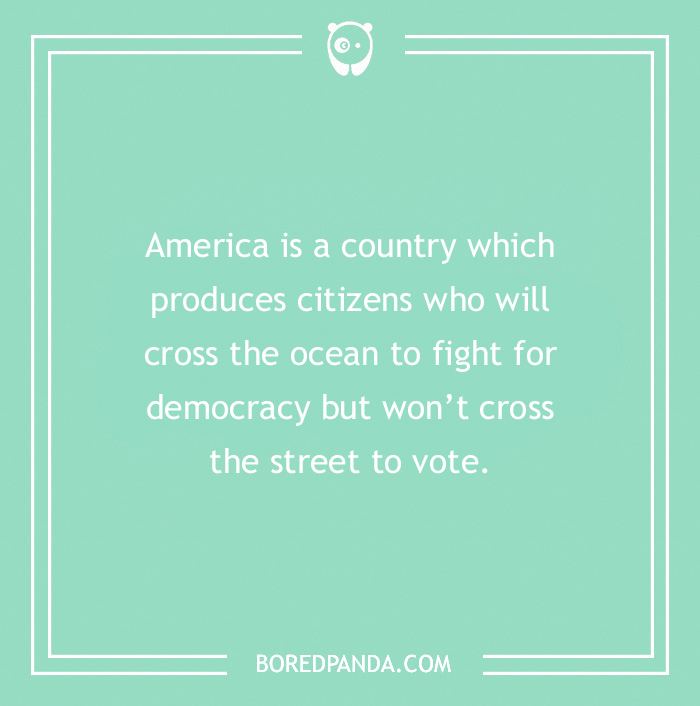 America is a country which produces citizens who will cross the ocean to fight for democracy but won’t cross the street to vote.