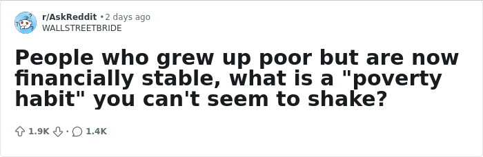 Scroll down to find ‘poor people’ habits these adults still have from growing up in low-income families, and don’t forget to upvote those that are straight-up hacks for smart living!