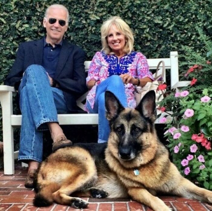 How is this picture poorly photographed? It’s a great photo of US President Biden, Dr. Biden and their gorgeous dog Commander.