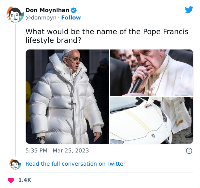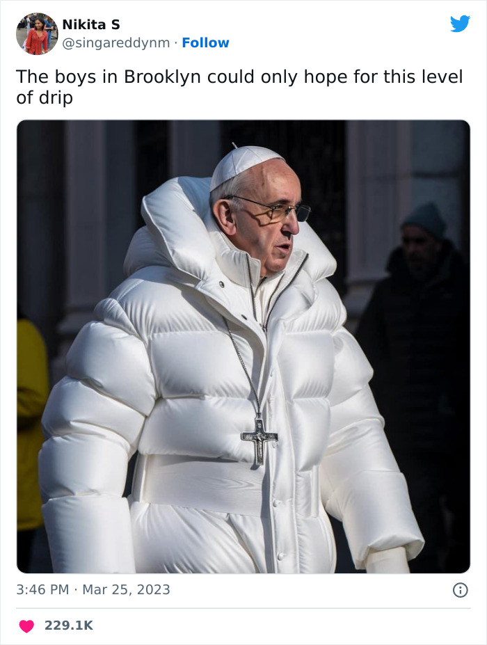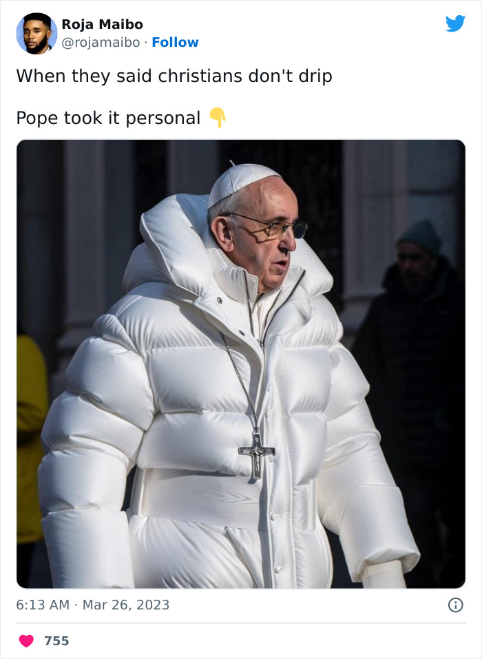 Although AI could still sometimes use help ironing out the kinks, such as giving people 7 and a half fingers on each hand or double the amount of teeth they have, this time it has outperformed itself - shockingly realistic images of the pope in a huge puffer jacket, earning him the title “Dope Francis.”