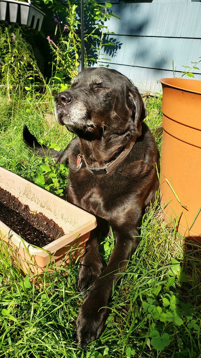 Girl is 12 years old today, enjoying her golden years sunbathing. Happy birthday, Roxy!