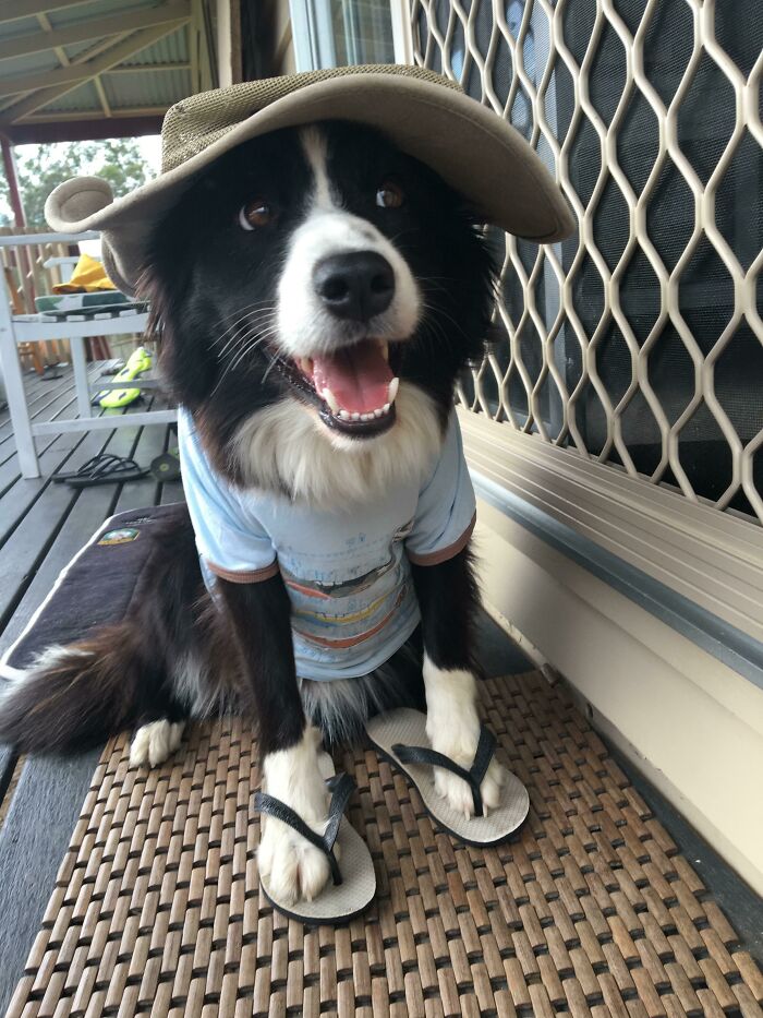 My girlfriend’s dog, Phoebe, is ready for the day!