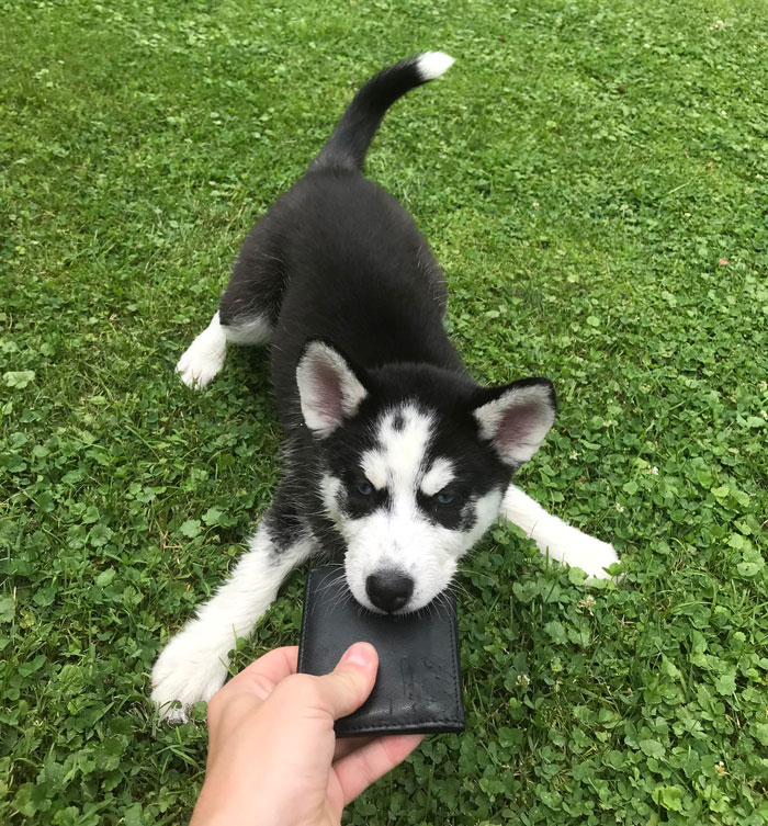 My pupper Sky stealing my wallet to buy more treats like the criminal she is.
