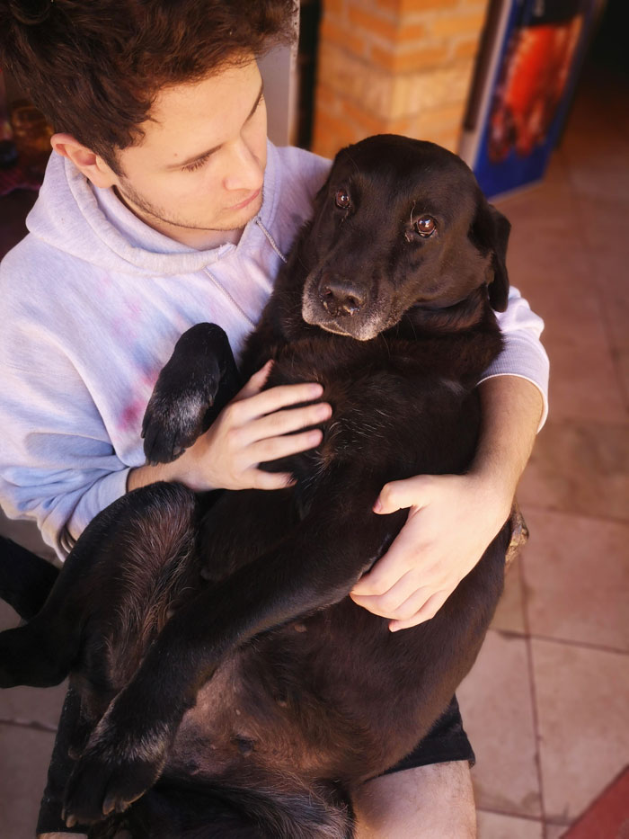So... This is Athena, she is a 9-year-old labrador. As you can see she's a chunker but she gets jealous when she sees our smaller dogs on our laps and throws a fit... So of course I have succumbed to her commands.