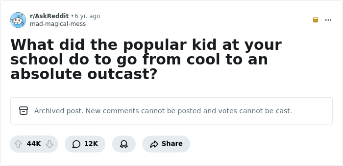 Well, that definitely gave me a different perspective on the rise and fall of a popular kid in schools. Anyway, that's it from our end, dear readers, as we leave you to scroll through the other wild stories. If you have experienced something similar, feel free to jot down your thoughts in the comments below!