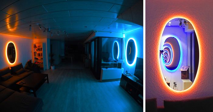 The best part? They’re super easy to make. The main things you’ll need is just some orange and blue LED rope lights and a couple mirrors. Don’t accidentally walk into them though, because that’s a whole lot of years of bad luck…