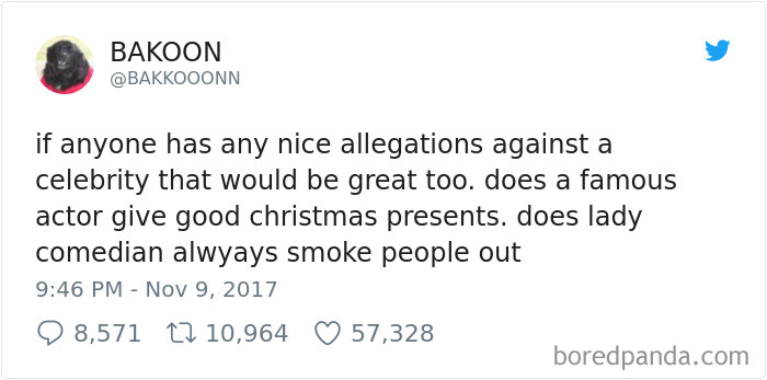 Celebrities are always in the news, but these days it seems like they're in the spotlight for all the wrong reasons. Following a flood of sexual assault allegations against Hollywood movie mogul Harvey Weinstein, hundreds of brave women have spoken out against several high profile members of the film industry including directors, producers, actors and comedians. But as this uplifting list of tweets proves, not all celebrities are bad. In fact, some are downright awesome.