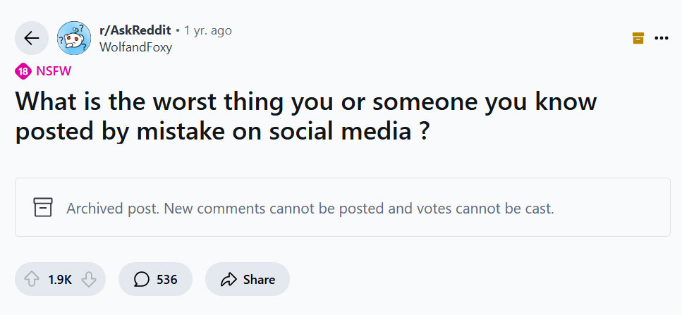 Someone asked “What is the worst thing you or someone you know posted by mistake on social media?” and people shared their wildest examples. So get comfortable as you scroll through, upvote your favorites and be sure to add your own thoughts in the comments below.