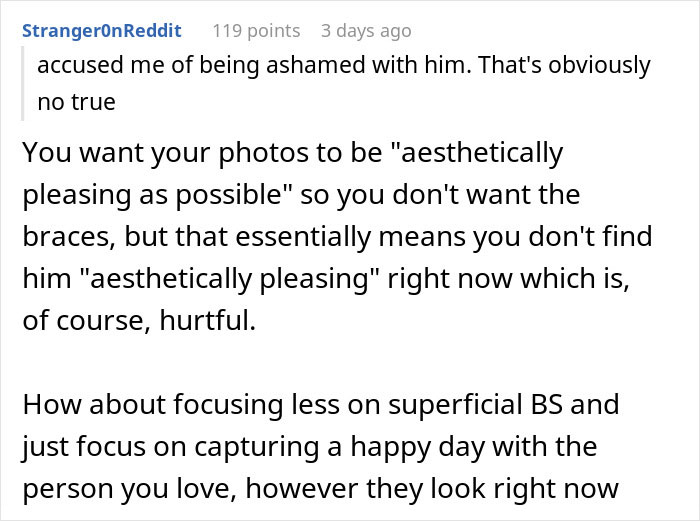Turns out, the couple’s wedding is coming soon, but now the author has doubts if it’s the right time. “The issue is that our wedding was supposed to be coming up soon, but now I plan to postpone till my fiance gets rid of his braces,” she wrote, wondering if it’s a reasonable decision.