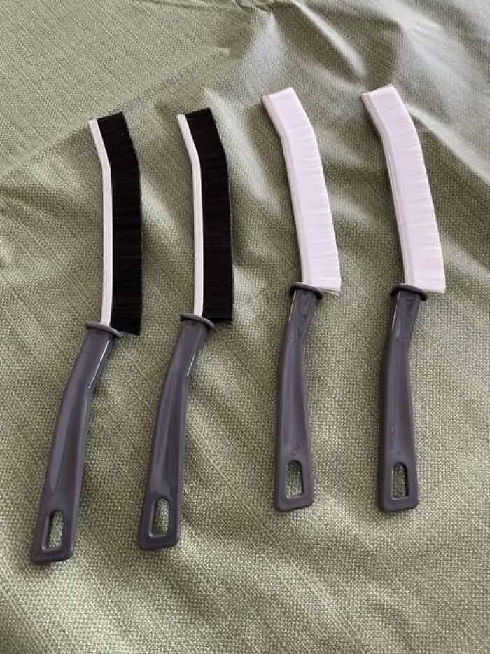 Review: " was initially frustrated by water collecting in our windows until I discovered that the small drain holes were blocked with dirt, mud, and other debris buildup. But these brushes worked wonders in removing years of buildup, and now we no longer have standing water. The bristles are stiff, making it easy to remove caked-on dirt that a toothbrush would barely scratch. And they're not just limited to windows - they work great on tile grout in showers and bathroom floors too! These brushes are perfect if you're a clean freak and want to get into all the nooks and crannies. They're well-made, sturdy, and boast firm bristles that scrub away grime in even the tiniest cracks and crevices. And their narrow design allows you to reach those previously untouched spaces with ease. Plus, they come in a pack of three, so you'll have all the scrubbing power you need for a long time to come. It's worth noting that these brushes are designed for scrubbing, not sweeping. But with their durability and built-to-last design, they're still a great bargain for the price. I highly recommend these brushes to anyone looking to conquer dirt and achieve cleanliness like never before." - Sam Fisher