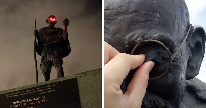 This statue of Mahatma Gandhi located in San Francisco recently got a really cool improvement