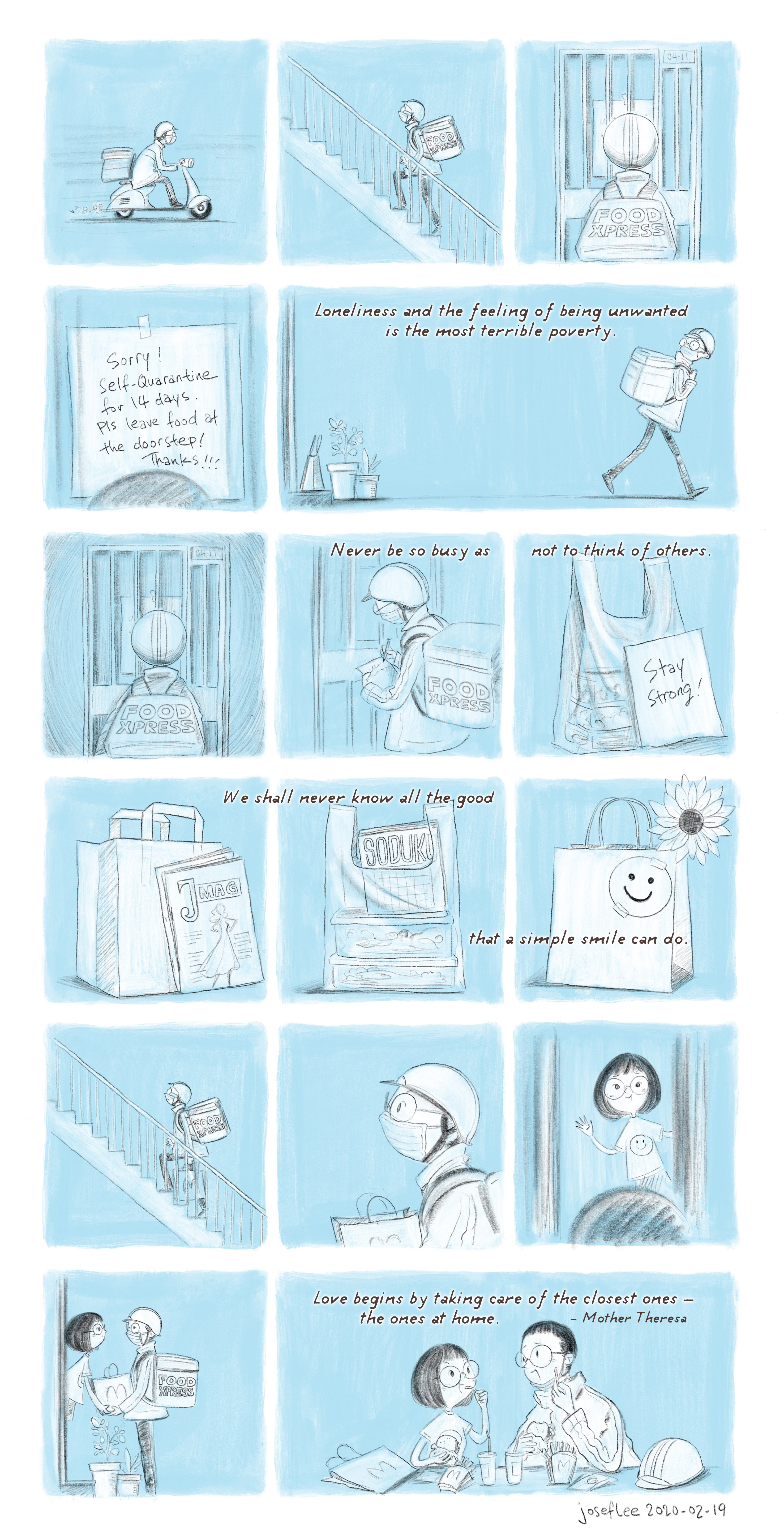 Thank you! I was mostly saddened by many real-life cases that resulted from this outbreak and got inspired to create these series of artworks. But I still hope readers can draw strength and positivity in some of these comics / artworks :)
