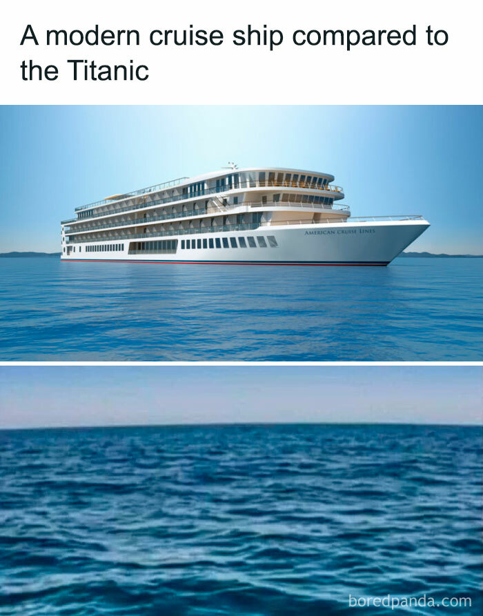 Modern cruise ship humorously compared to the sea, referencing dad jokes.