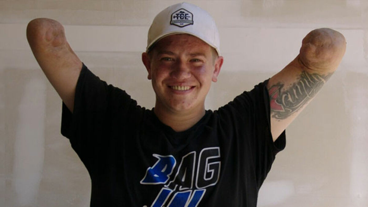 His arms were amputated below the elbow, and his legs were amputated just above the knees.