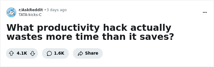 That’s what we’re focusing on today – poor productivity hacks. In our list, you'll find plenty of tips that netizens deem to be not only unhelpful but, in some cases, even harmful to efficiency (or a person’s well-being).