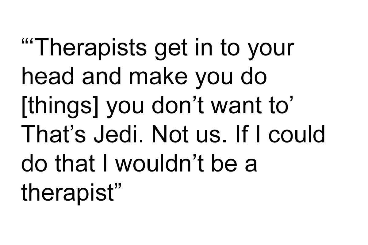 > 'Therapists get in to your head and make you do s**t you don't want to'