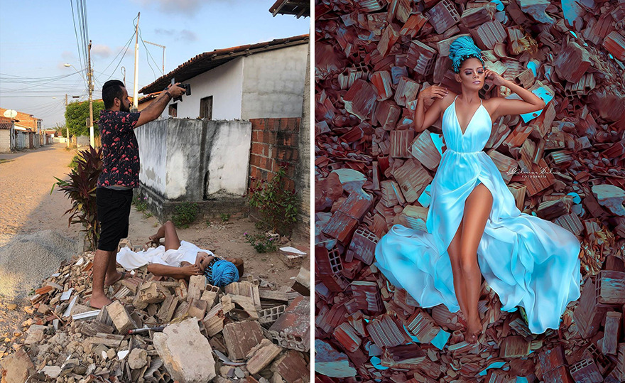 By sharing his work on Instagram, Gilmar shows that the work of a photographer is not easy. Besides organizing, preparing props, photographing, and editing, he sometimes has to lie on the muddy floor. "The fact that I show everything is more to motivate the people who are now beginning to continue studying, dedicating themselves." says the photographer to Bored Panda.