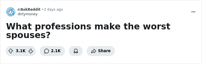 These alleged homewrecking professions were the topic of conversation in a recent Reddit thread. Responses came pouring in, mentioning occupations like police officers, lawyers, flight attendants, musicians, and influencers, to name a few.