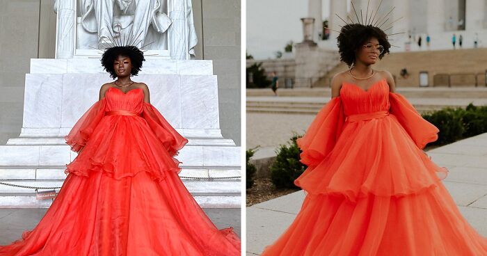 Jasmine decided to take her sister along and pose in front of the Washington Monument and the Lincoln Memorial. And right when the girls were about to leave, a wedding photographer, Sara Isabella Ortiz, noticed Jasmine and asked to take her picture. Apparently, the woman was absolutely mesmerized by Jasmine’s dress.