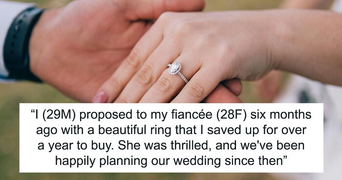 The Original Poster (OP) is a 29-year-old man who told commenters he proposed to his 28-year-old girlfriend. For the proposal, he had put aside money for a year to be able to afford the engagement ring. This kind of extravagant spending on rings is par for the course. According to a study by The Knot, the average cost of engagement rings is around $5500. Nearly half of their respondents spend between $1000 and $4000, and only 9% spend below $1000.