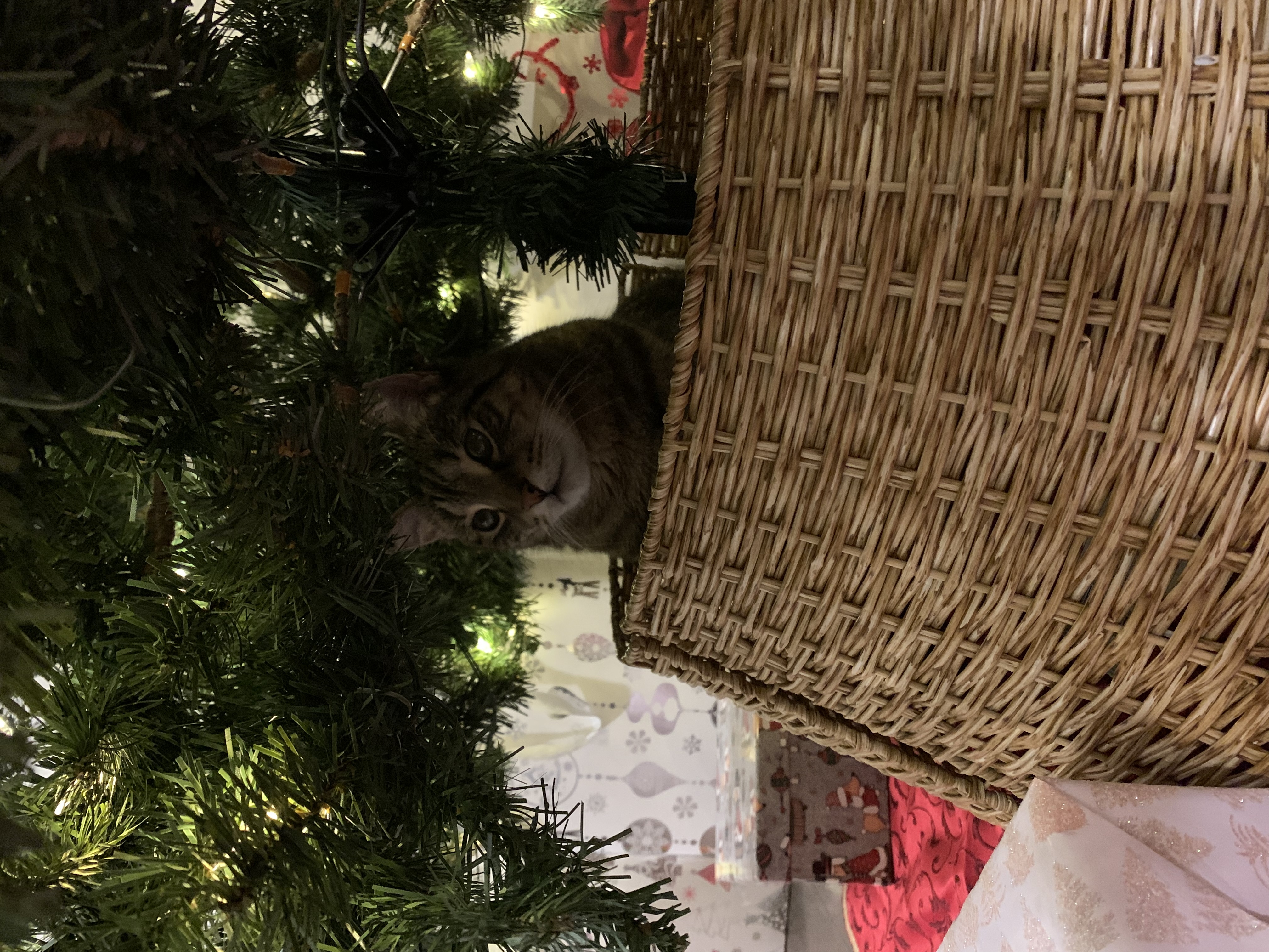 Our cats love to hide sleep inside the tree collar under our faux Christmas tree. We don’t use anything that breaks like glass ornaments. We use wide ribbons and secure the ornaments to the tree so that there’s no choking hazard. It’s really no different than childproofing your home. FCE116A2-3...4-jpeg.jpg
