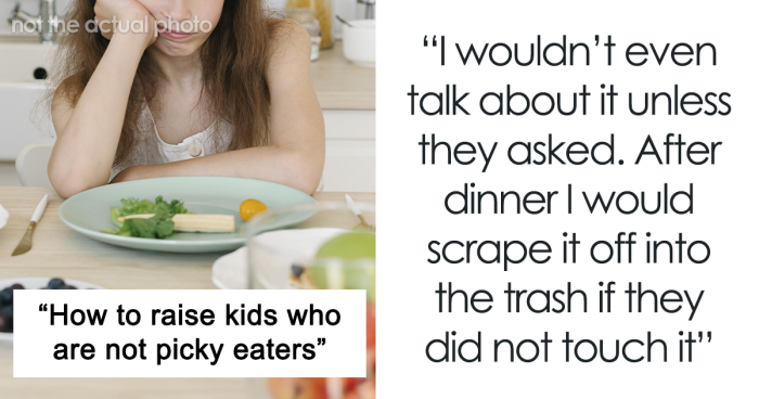 Load More Replies...Some kids are picky eaters for a reason. Mine was because my mom's cooking was terrible. She was lazy and really didn't take the time to make anything with care. Most of it was overcooked and bland because she barely used any seasoning. I really didn't know how some foods were supposed to taste until I started cooking them for myself.