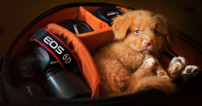 Today is an International Puppy day… And this is the reason I would like to share this story with you! And of course, it’s all about puppies! During photo shoots of cute border collie and retriever puppies, decided that my camera bag would be great place to take a nap… or to have fun inside.. Just look at them!