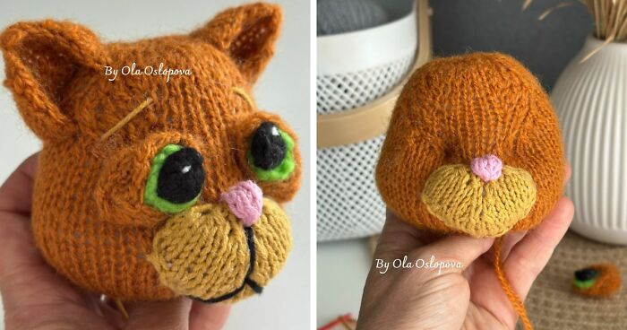 I tried very hard to convey the depth of the gaze. The eyes should stand out. The most interesting part was knitting the eyes. The gaze turned out deep. That's exactly what I wanted.