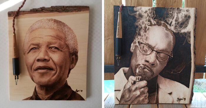 Artist Burns Wood To Make Extremely Realistic Portraits Of Celebrities And Cultural Icons On Them (41 Pics)